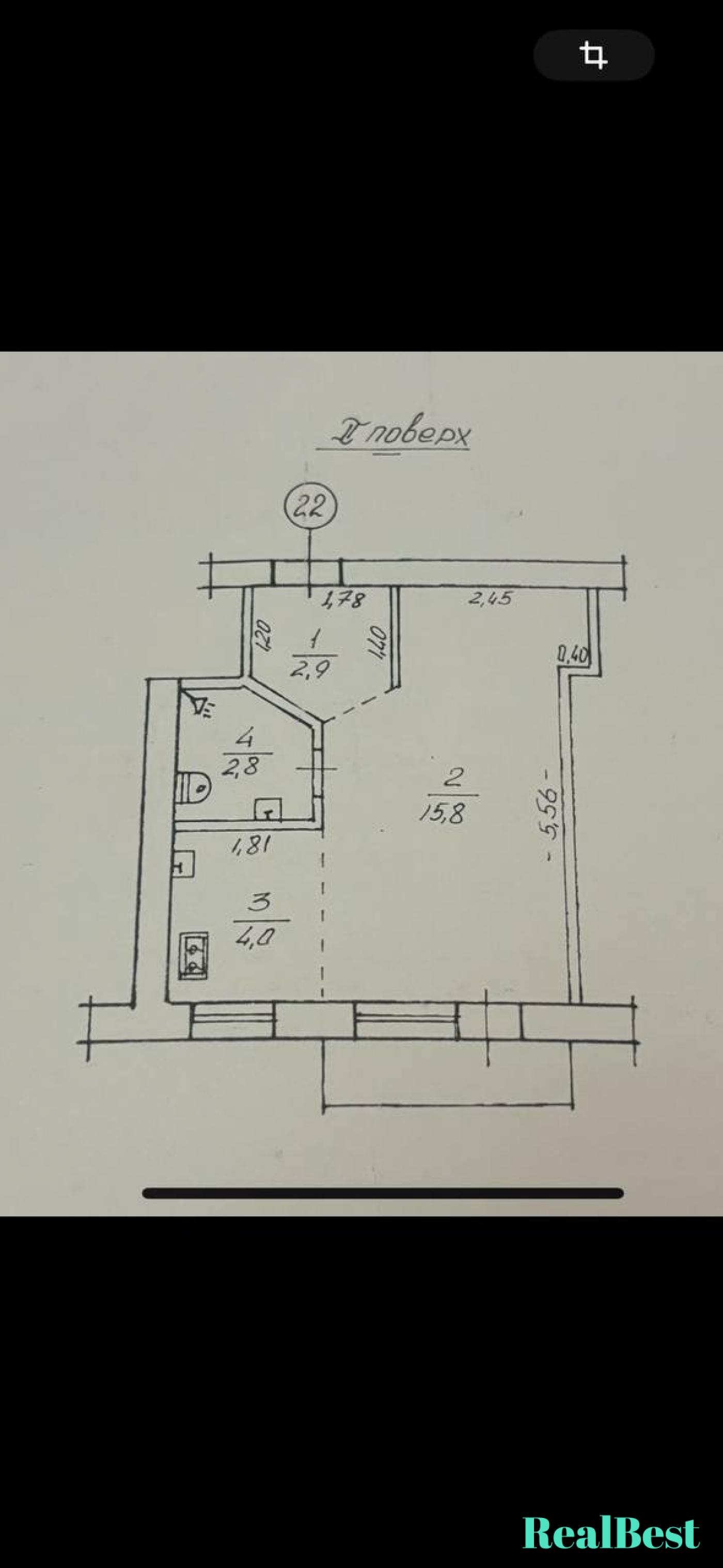 - Житлова площа: 15.8 м2