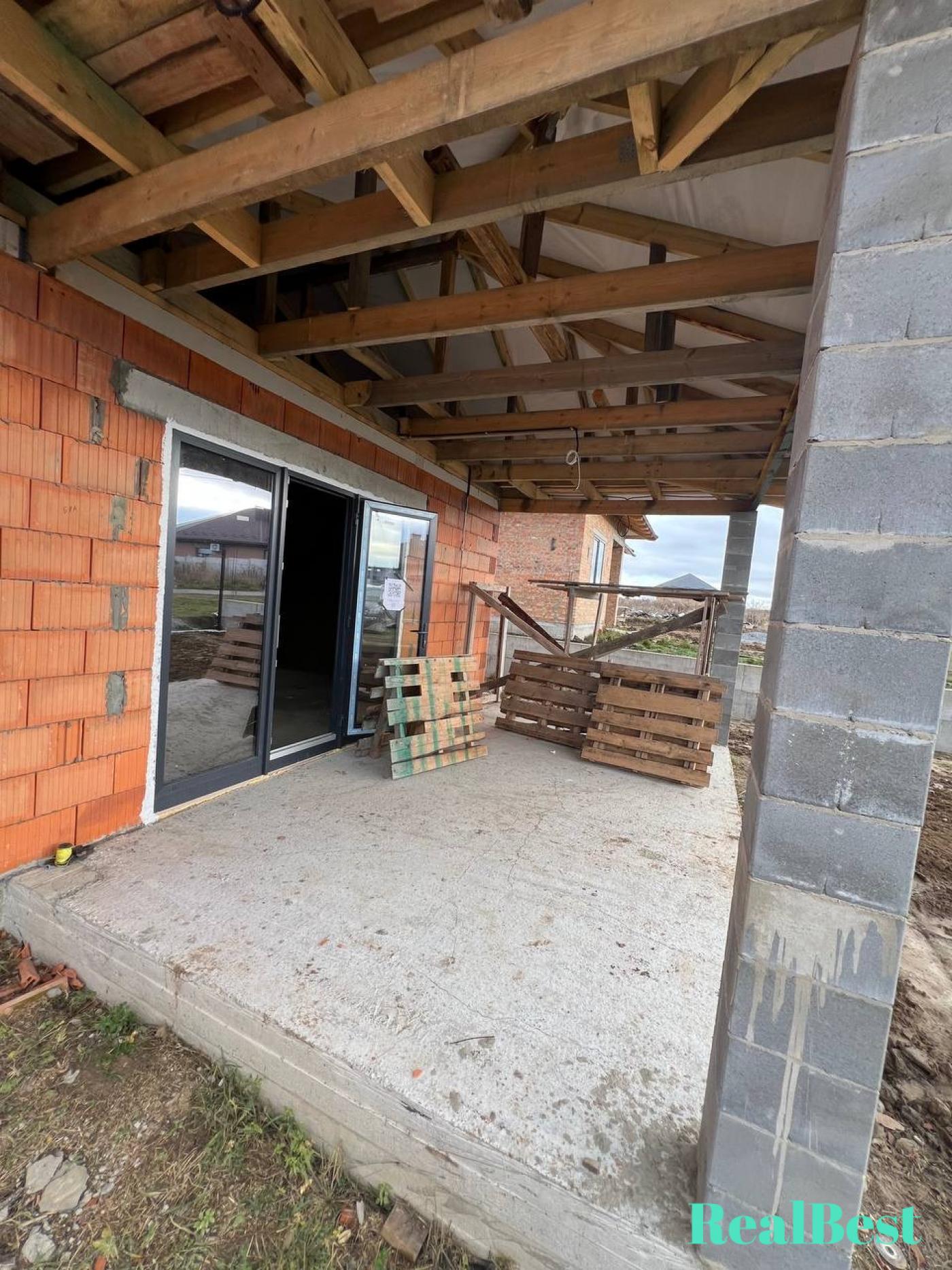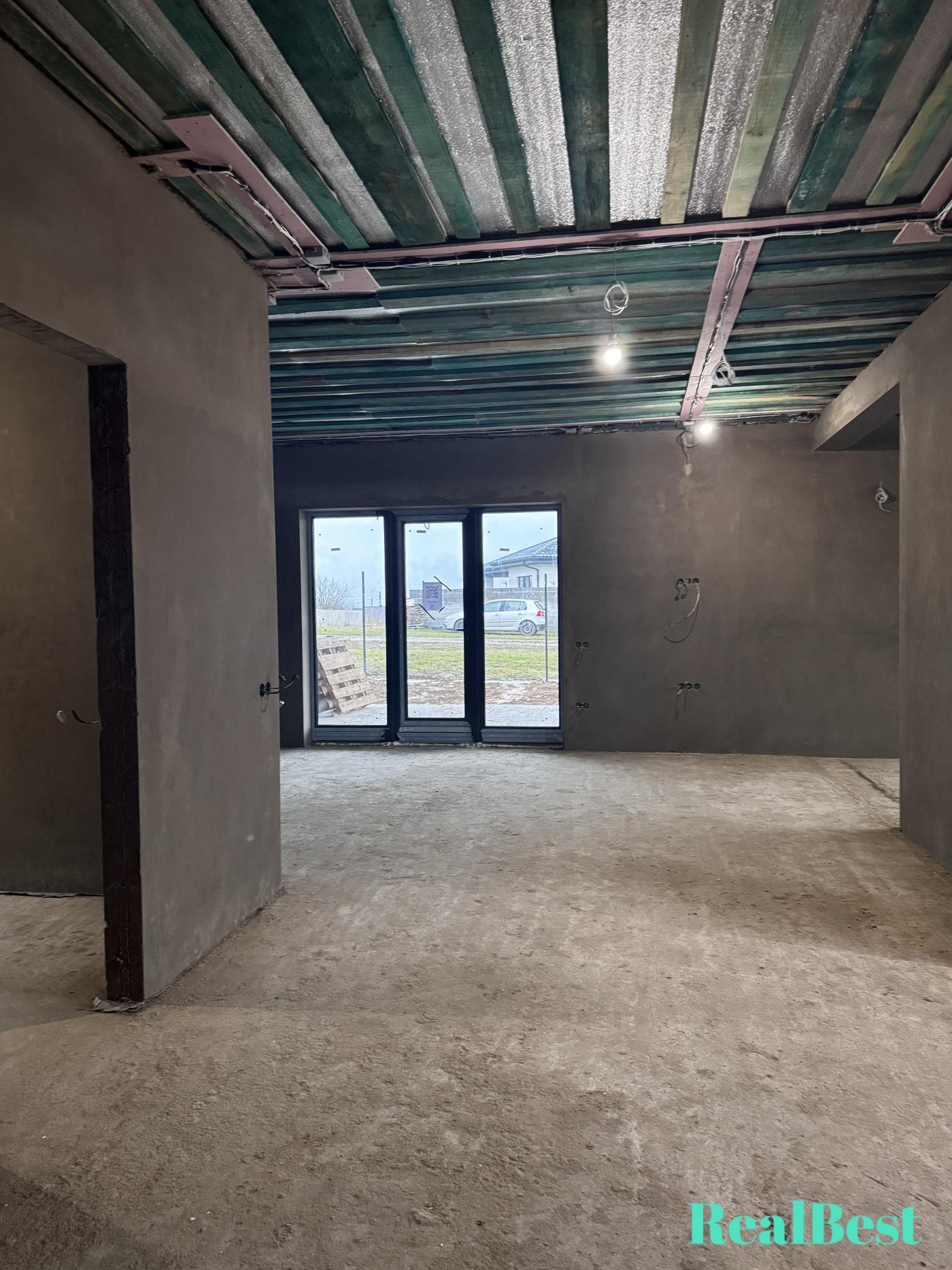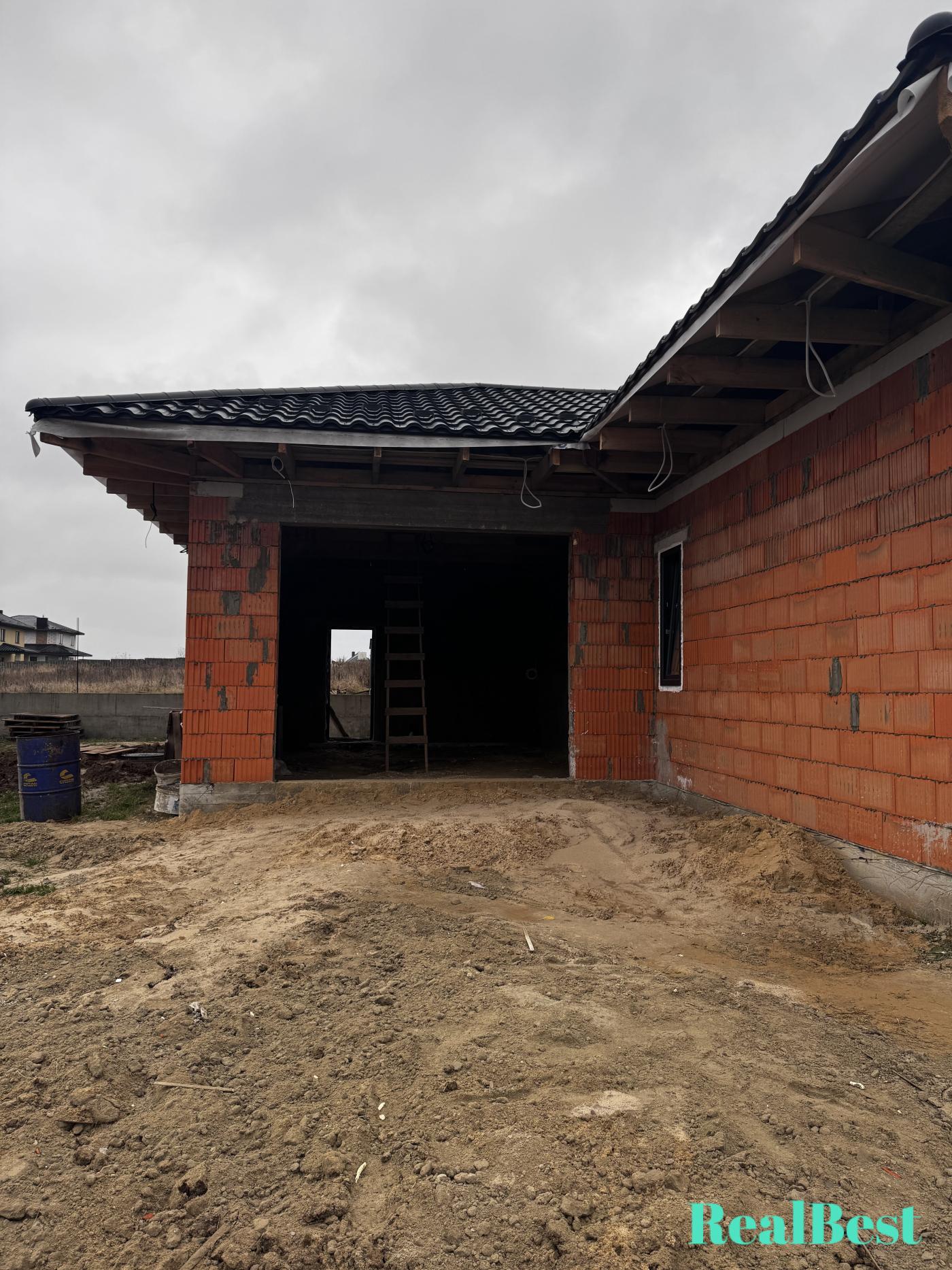 • В будинку та гаражі вже зроблена чорнова штукатурка.