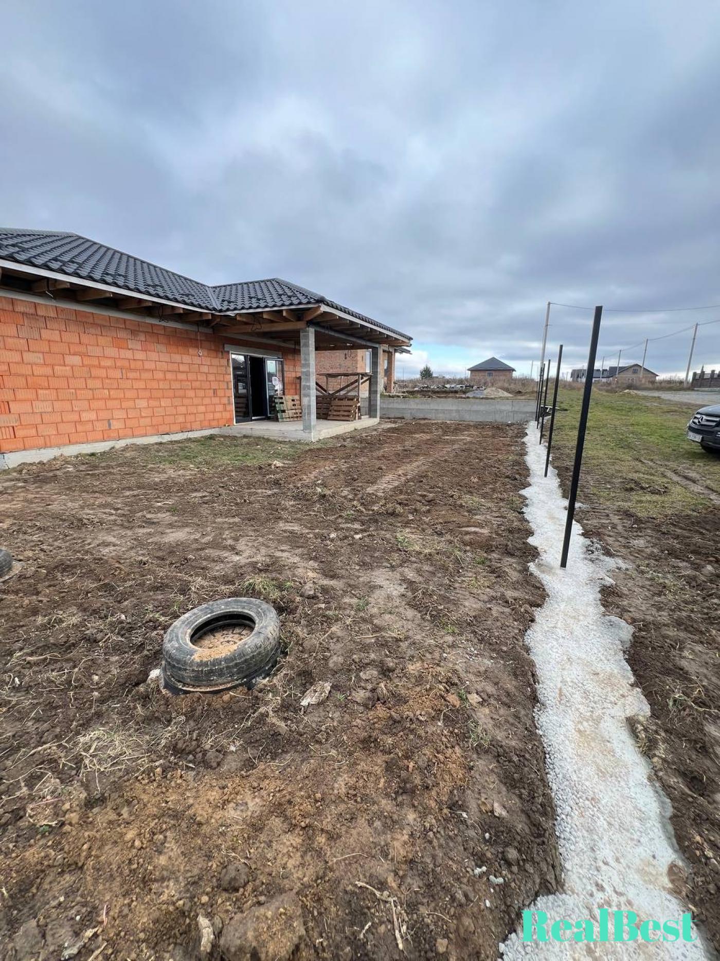 • По периметру ділянки залита бетонна стрічка під паркан.