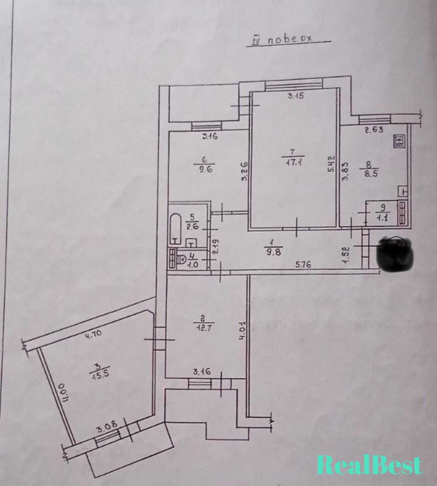 - Площа кухні: 9 м2