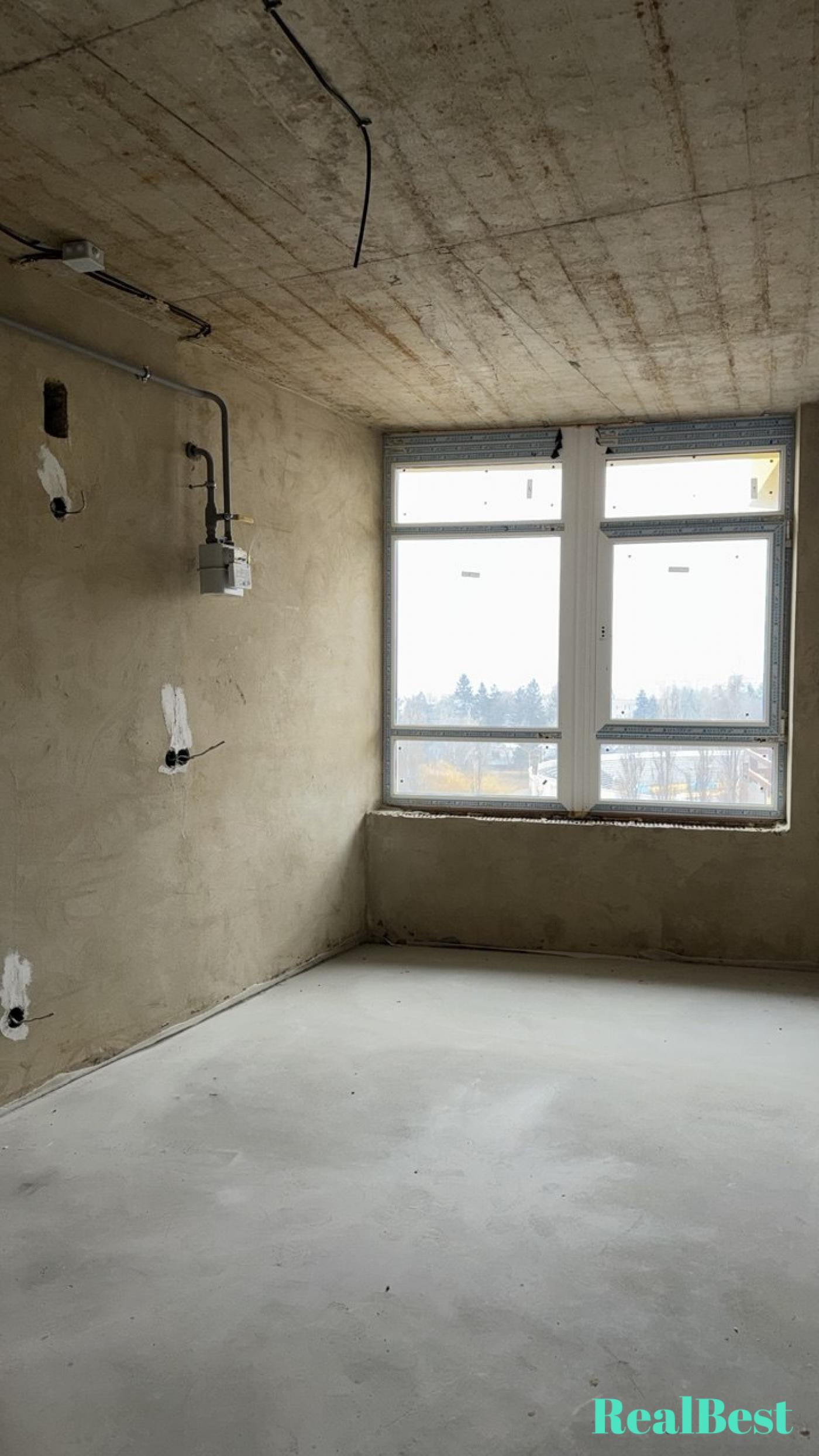 Стан квартири: Після забудовників. Штукатурка стін у кімнатах (вапняно-піщана). Штукатурка стін у ванній (цементно-піщана). Стяжка підлоги. Вікна – металопластикові, енергозберігаючі. Стеля – 2,8 м.